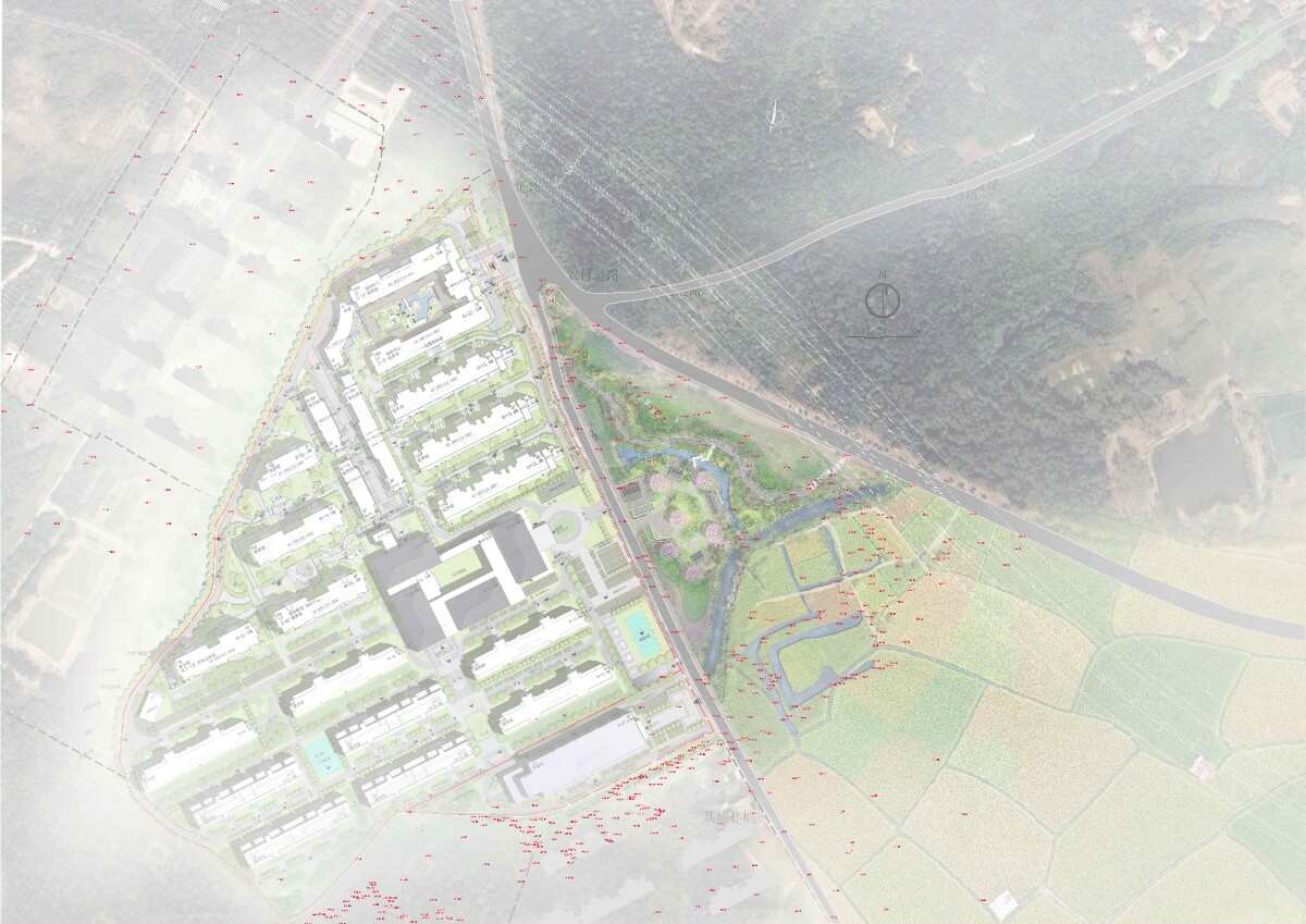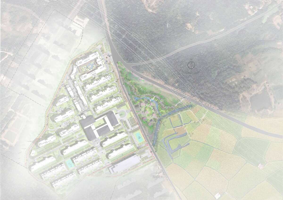 設(shè)計地塊位于安徽省合肥市肥東縣,目的是打造一個理想中的精神家園。它代表著遠離塵囂、親近自然、追求藝術(shù)和心靈自由的境界。