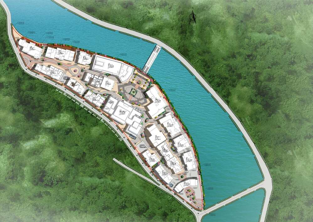 充分利用河堤線高差,結(jié)合建筑總體布局,依托河床臺地與山體天際線,構(gòu)建立體的景觀空間結(jié)構(gòu)。
