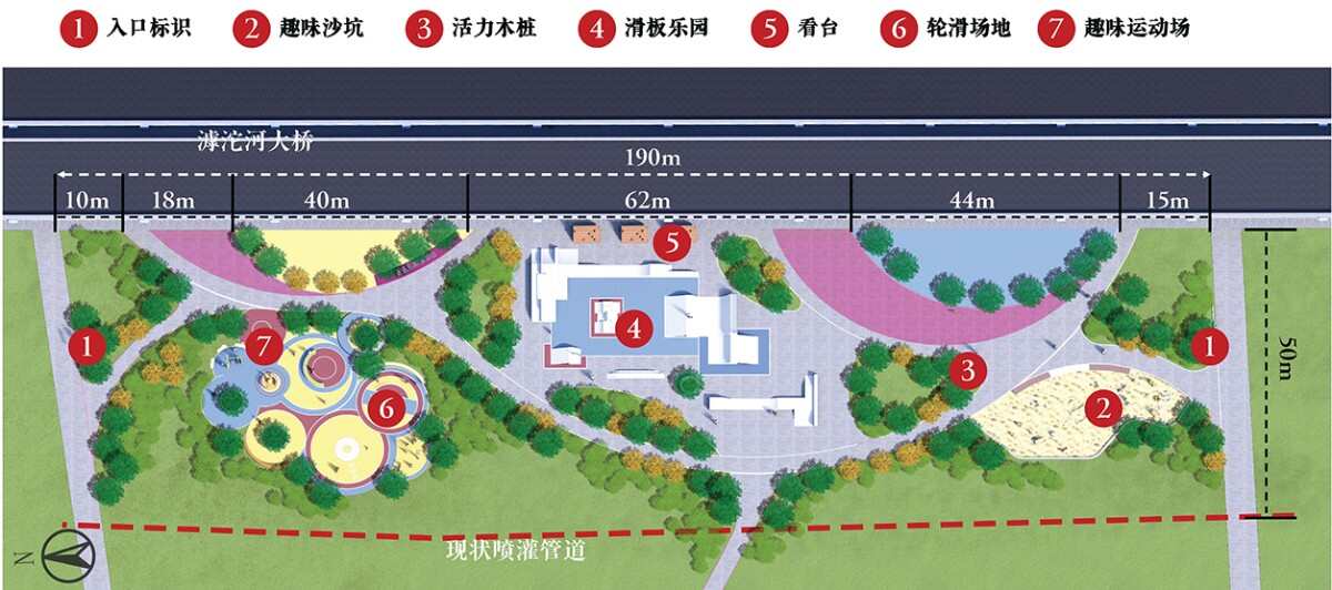設(shè)施配套:停車場、衛(wèi)生間、驛站、垃圾桶、標(biāo)識牌、路燈、河邊游覽小環(huán)線等合理分布,提高人文關(guān)懷。