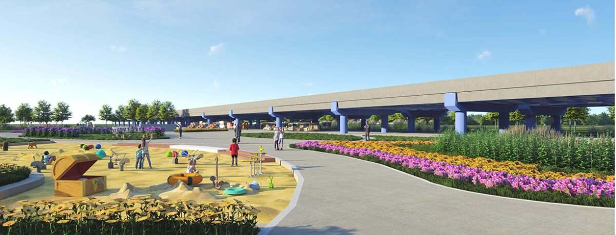 設(shè)計說明:現(xiàn)狀道路修復(fù),主要任務(wù)是植物補植,打造景觀大道。在橋東北側(cè)停車場至滹沱河連接段,打造景觀大道,植