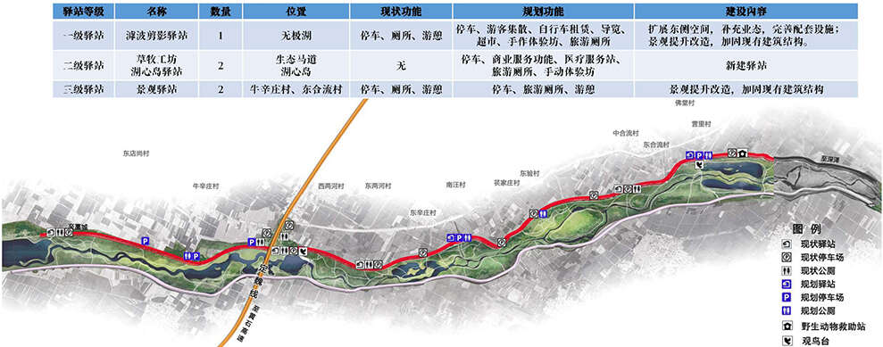一級驛站:重點提升滹波剪影驛站,作為滹沱河(無極段)核心休閑驛站。植入游客集散、自行車租賃、導(dǎo)覽、超市、手作體驗