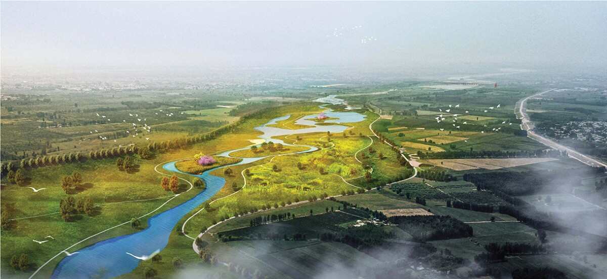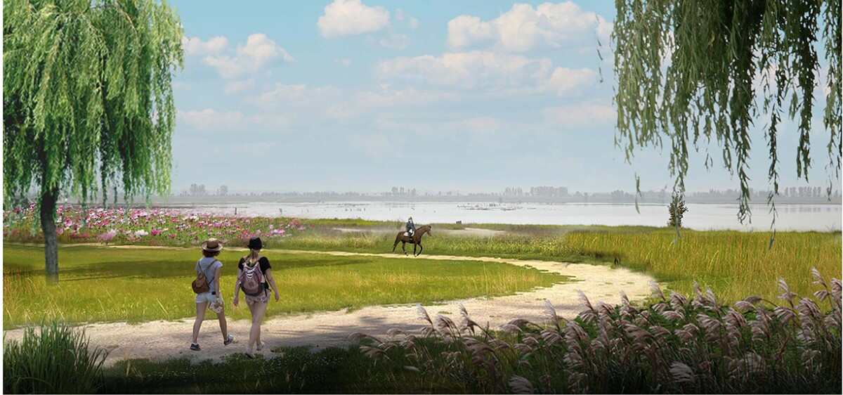 成風(fēng)景宜人、水草豐美的濱河休閑生態(tài)濕地。