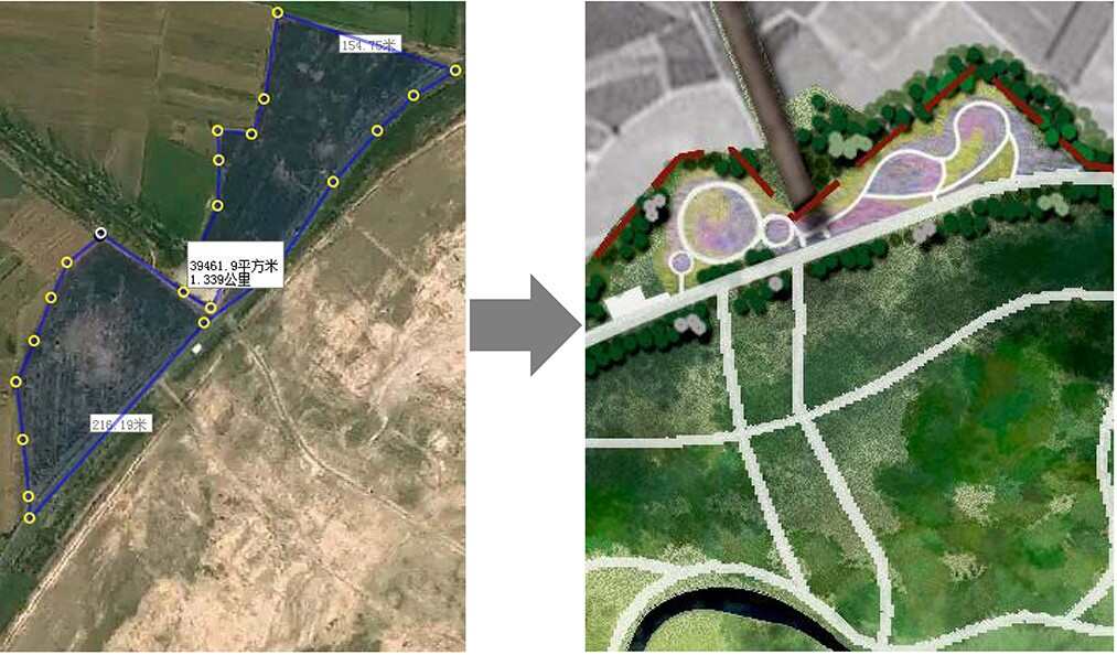 設(shè)計區(qū)域內(nèi)受縣界與用地性質(zhì)的影響,可用于現(xiàn)狀改造、舉辦活動、景觀打造、業(yè)態(tài)植入范圍如圖所示。