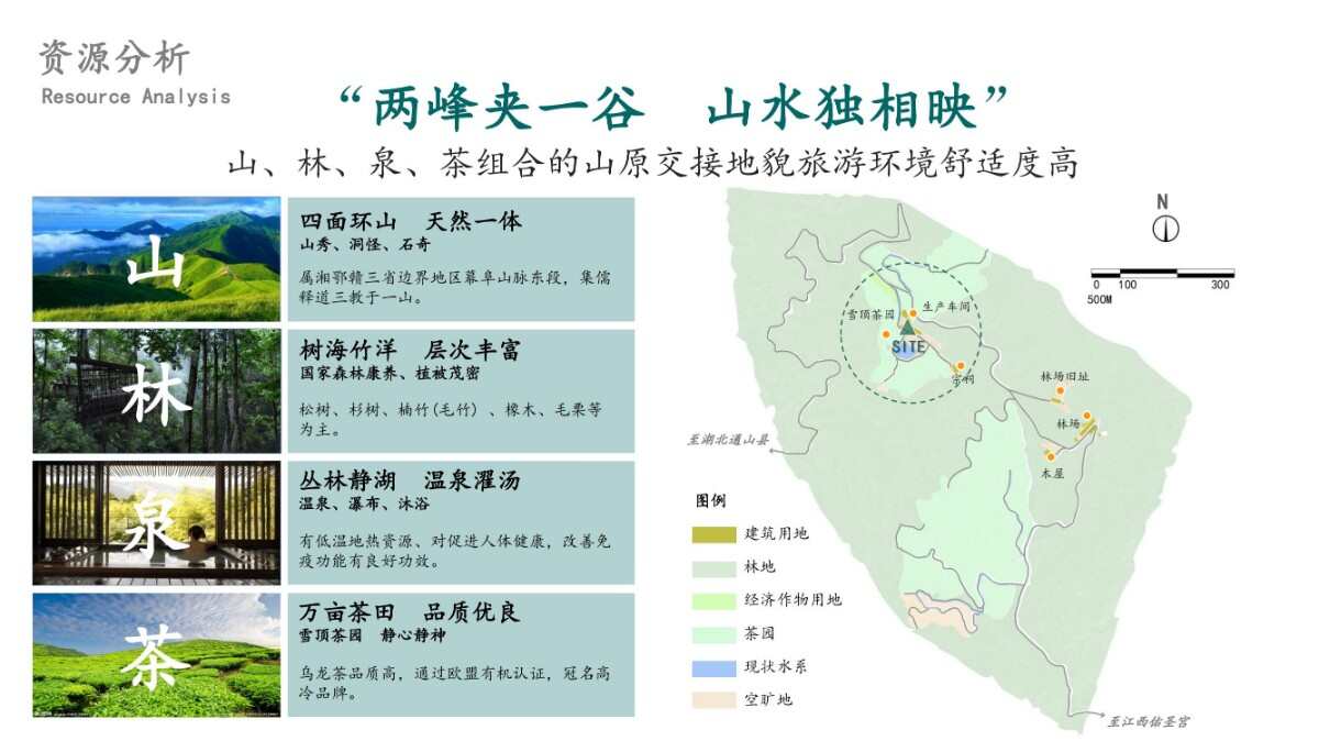 太平山具有古老的地質(zhì)基礎(chǔ),復(fù)雜的地形地貌條件以及溫濕多雨的山地氣候,為自然植被及各種生物的繁衍提供了十分有利的條件,因而區(qū)內(nèi)保存著比較完整的亞熱帶森林生態(tài)系統(tǒng)。森林覆蓋率高達96%,是中國華東地區(qū)的天然“物種基因庫”。擁有發(fā)展國際高端康養(yǎng)目的地的最佳機遇,坐享擁抱城市繁華和回歸田園生態(tài)的唯一選擇,重點發(fā)展“山地康養(yǎng)”,強調(diào)突出 “溫泉度假”,打造“太平山雪頂IP”,“湘鄂贛三省交界的莫干山”。引入低影響開發(fā)理念(LID),保護生態(tài)系統(tǒng)根基的基礎(chǔ)上,利用獨天得厚的自然資源,依山就勢,與大自然共生,做真正的道法自然·天人合一。相關(guān)作品
